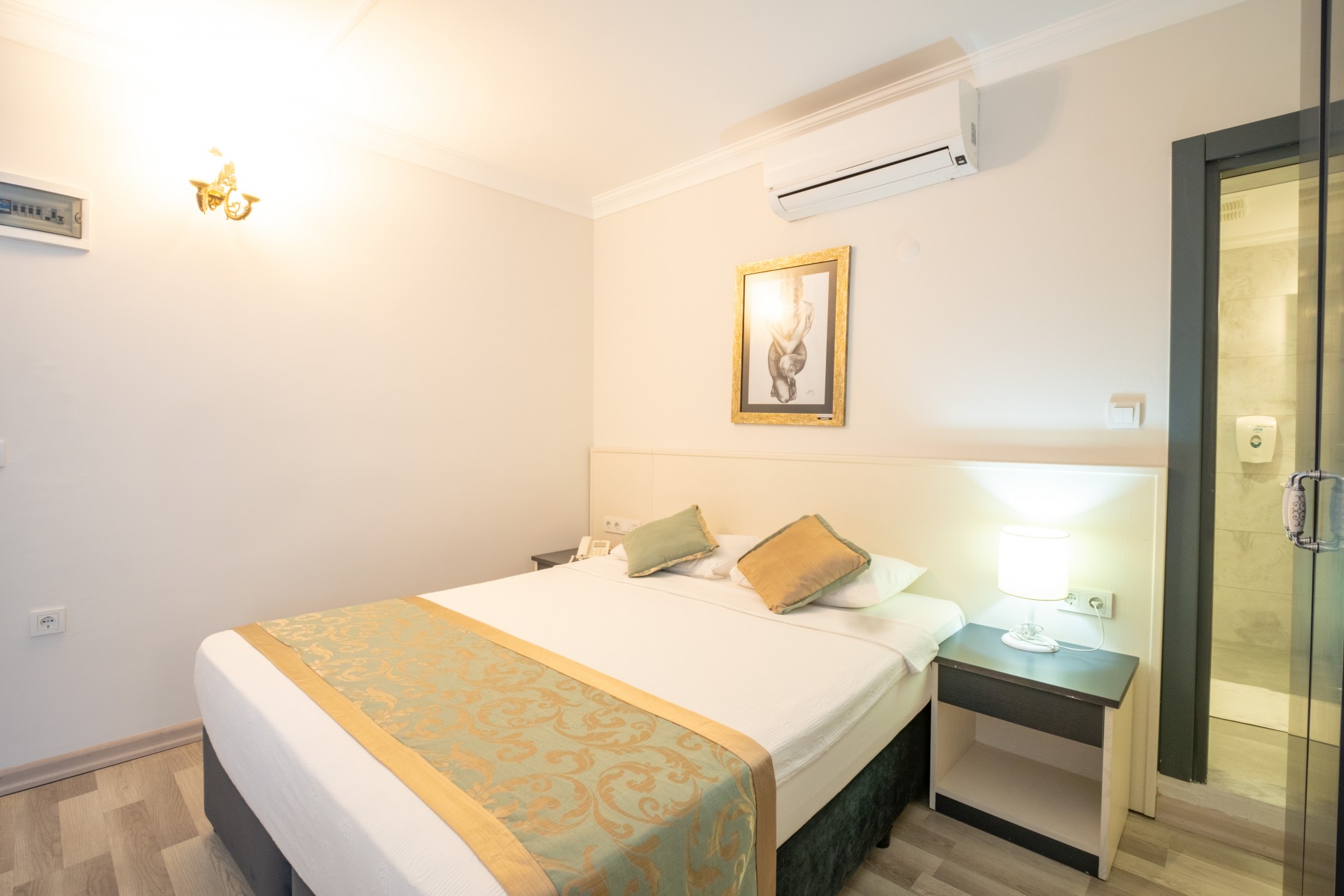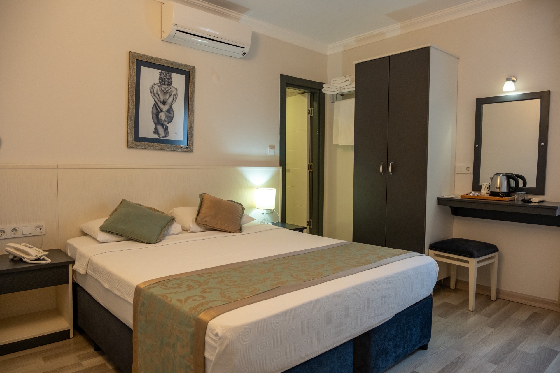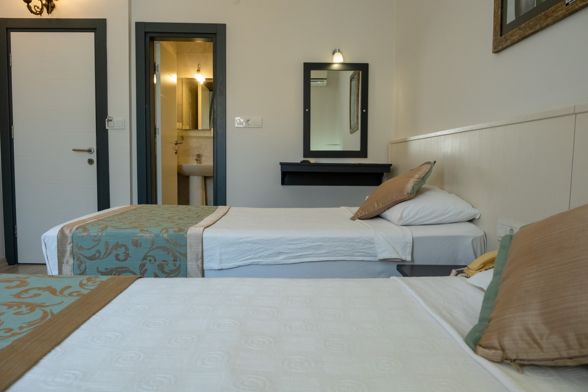 Odalarımızın manzarası yoktur, otel koridor kismındaki ara sokak manzaralı; içerisinde iki adet tekli yatak veya çift kişilik duble yatak + tekli yatak bulunur. Odalarımızda ücretsiz Wifi, televizyon, klima, telefon, saç kurutma makinası, terlik, sabun, şampuan, havlu, 24 saat sıcak su ve oda servisi gibi imkanlarımız bulunmaktadır. Ayrıca yaz ve kış aylarında ücretsiz olarak yararlanabileceğiniz plajımız mevcuttur.